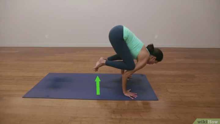 Nunca entres en la postura del cuervo (ni en ninguna otra postura de yoga) de forma brusca. Traslada el peso suave y progresivamente hacia delante, hasta que los pies se despeguen del piso.