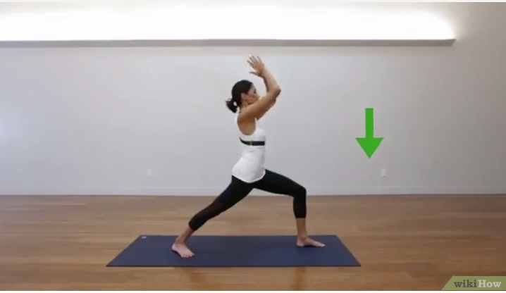 Baja el trasero de tal manera que la rodilla delantera esté directamente por encima del pie izquierdo, doblada en un ángulo de casi 90 grados. Baja las caderas ligeramente hacia el piso, doblando la rodilla delantera. Es recomendable que la rótula esté directamente sobre el tobillo, manteniendo la pierna inferior en una línea recta.