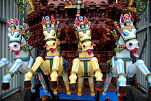Caballos (ashua) atados a una carreta (ratha) india.